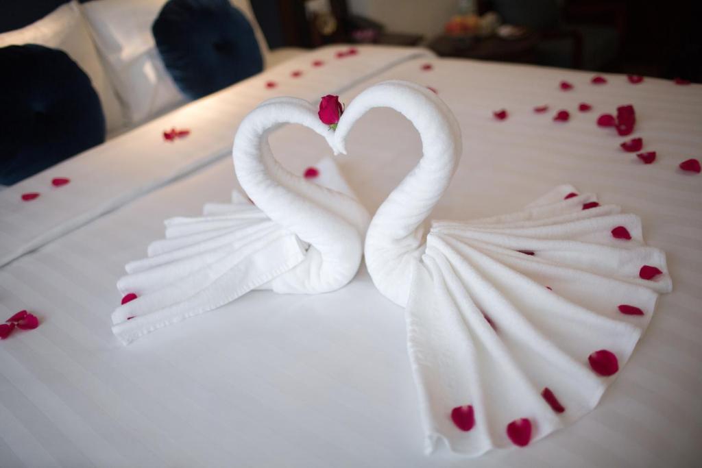 • Serene Sanctuary: tầng 7, giường tròn phủ khăn linen thêu tay, chai cacao nóng + hộp bánh quy bơ nhà làm chờ sẵn