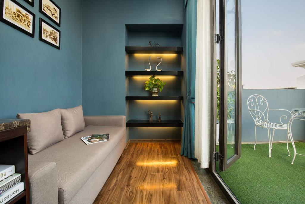 • Serene Balcony: ban công thật lát gỗ, ghế mây + bàn trà nhỏ, tối ngồi nghe tiếng xe đạp lọc cọc dưới ngõ