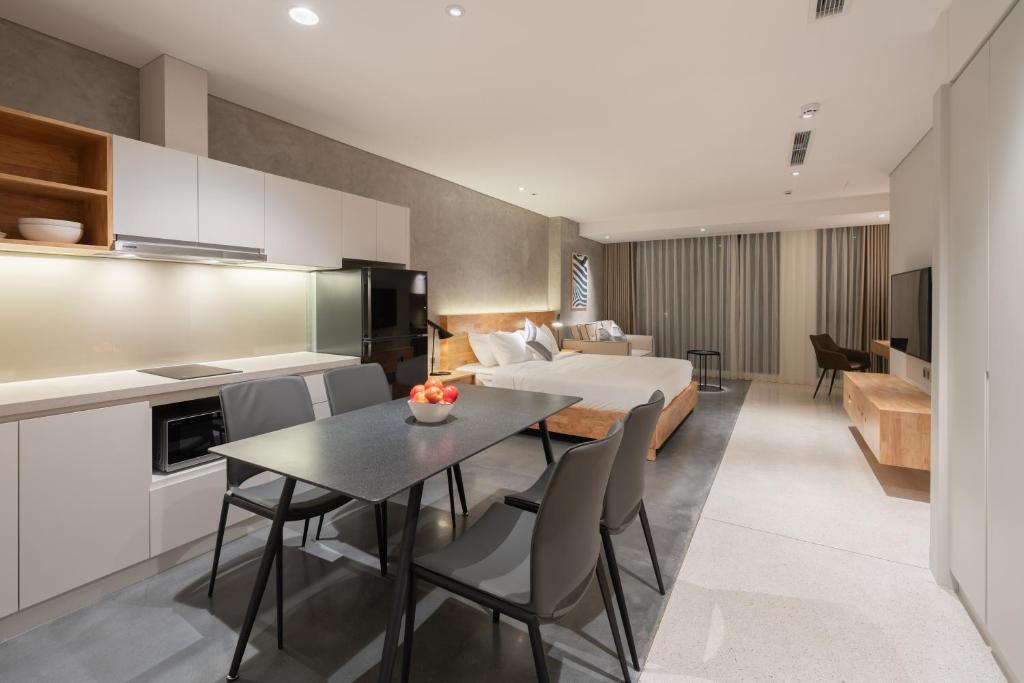 Không gian lưu trú hiện đại, tiện nghi, có TV màn hình phẳng và bếp đầy đủ tiện nghi
