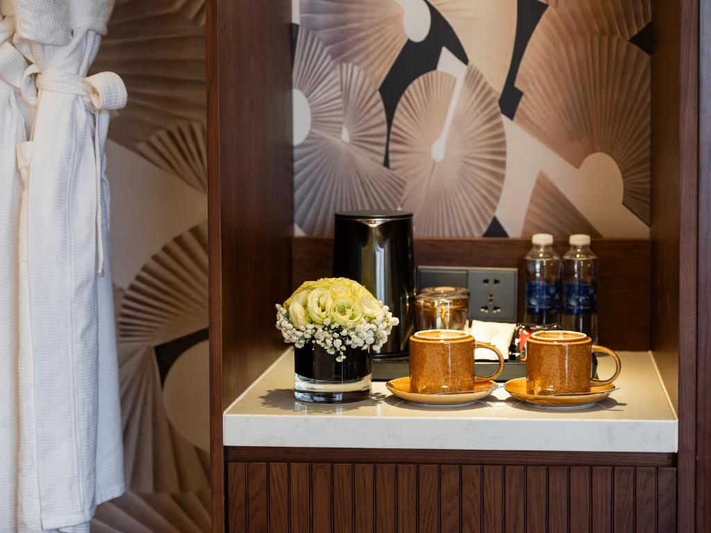 Phòng ốc thì đẹp đến mức muốn khóc. Giường king-size to đùng, nệm êm như ôm, chăn ga trắng muốt thơm mùi nắng mới. Khu vực ghế ngồi xinh lung linh với sofa xám nhạt, bàn trà kính, mở cửa sổ là thấy Nhà hát Lớn hoặc phố cổ hiện ngay trước mặt. TV 55 inch có truyền hình cáp + Netflix sẵn sàng, két an toàn, tủ lạnh mini, ấm đun nước, đồ vệ sinh cao cấp, vòi sen mưa nóng lạnh tức thì – mọi thứ đều được chăm chút như đang ở nhà một người giàu yêu chiều khách.
