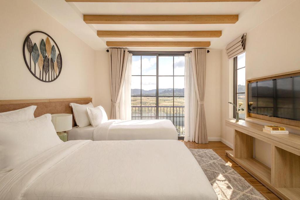 Ngay khi đặt chân đến, du khách sẽ bị cuốn hút bởi khuôn viên xanh rợp bóng cây, vườn nhiệt đới rực rỡ và hồ bơi ngoài trời trong vắt. Sự kết hợp giữa kiến trúc hiện đại và cảnh quan thiên nhiên mang đến bầu không khí thư giãn hiếm có, lý tưởng cho những khoảnh khắc nghỉ ngơi sau hành trình khám phá đảo ngọc.