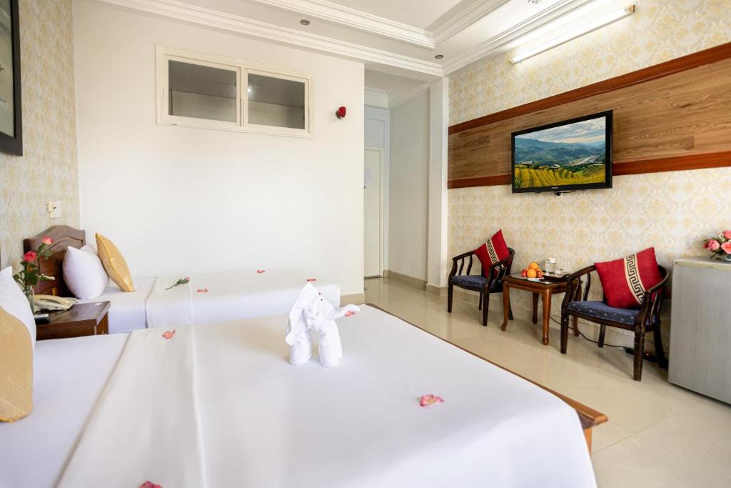 Giá phòng tại Hue Harmony Hotel được đánh giá là hợp lý so với chất lượng. Chỉ từ khoảng 450.000 – 550.000 VNĐ mỗi đêm, bạn đã có thể tận hưởng không gian sạch sẽ, thoáng mát và đầy đủ tiện nghi. Với khách quốc tế, mức giá tương đương khoảng 24 USD – một lựa chọn cân bằng giữa giá trị và trải nghiệm.