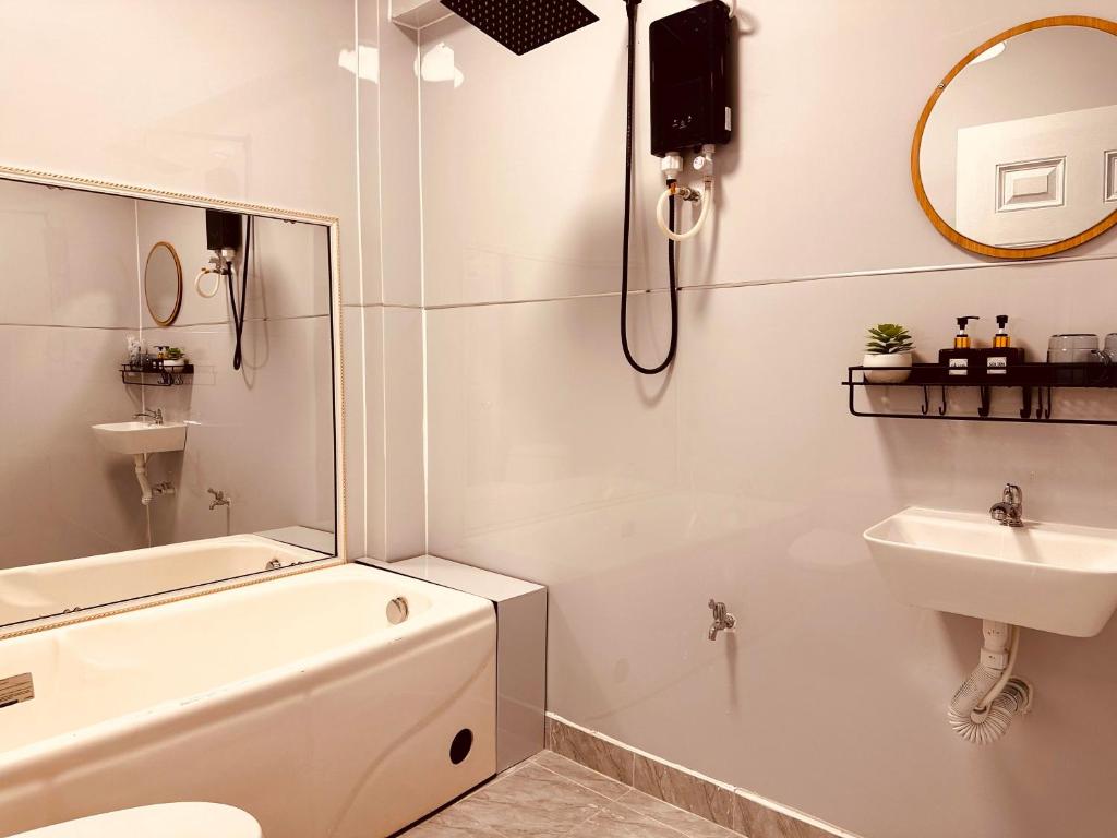 Phòng tắm riêng với vòi sen, khăn sạch, đồ vệ sinh cá nhân chất lượng
