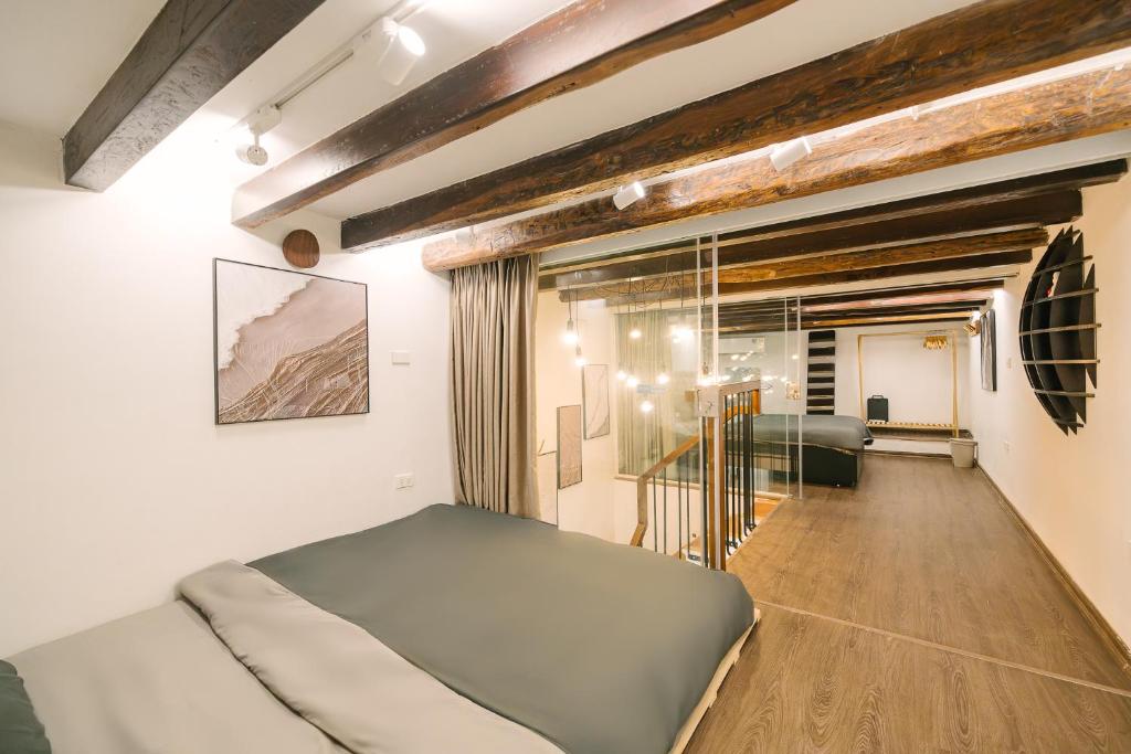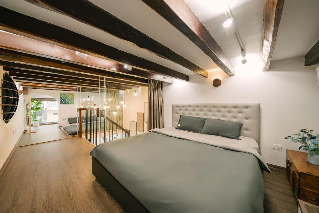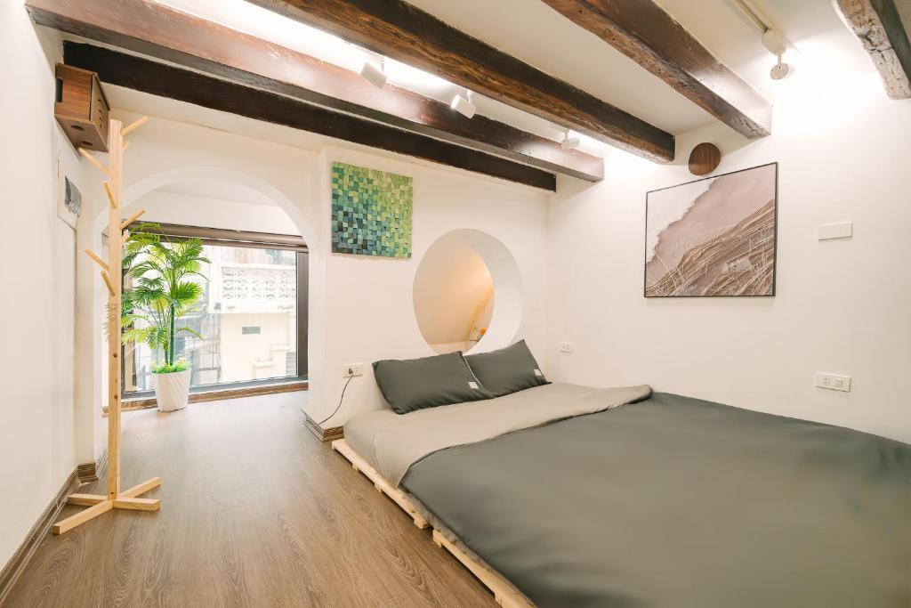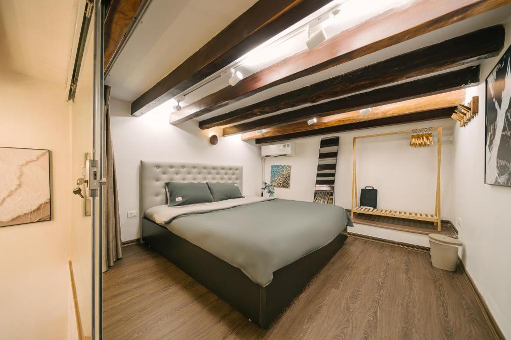 Đừng để cái tên “căn hộ 1 phòng ngủ” đánh lừa. Đây là kiểu một-phòng-ngủ mà khiến người ta phải thốt lên “sao lại vừa đủ đến thế này”. 45m² được bóp chặt từng centimet để dành hết không gian cho sự dễ chịu: giường king-size 2m2 đặt sát cửa sổ lớn, mở mắt ra là cả phố cổ đang ngủ vùi trong nắng sớm. Ga trắng muốt, gối lông vũ êm như ôm, chăn mỏng vừa đủ để đêm Hà Nội se lạnh không làm bạn tỉnh giấc.
