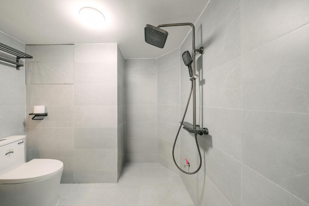 Phòng tắm nhỏ mà ấm. Vòi sen mưa, nước nóng khỏe ru, gạch bông gió họa tiết cũ, khăn tắm dày cui, dầu gội mùi sả chanh thảo mộc, dép đi trong phòng êm như bước trên mây. Đặc biệt có một ô cửa kính nhỏ nhìn ra ngõ, vừa tắm vừa nghe tiếng bà hàng xóm gọi nhau đi chợ sớm, cảm giác thân thương đến lạ.