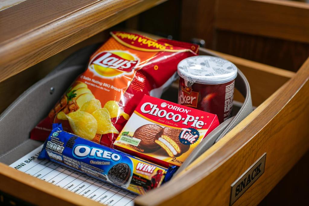 • Minibar miễn phí toàn bộ (bia Hà Nội, nước ngọt, snack nhập khẩu)