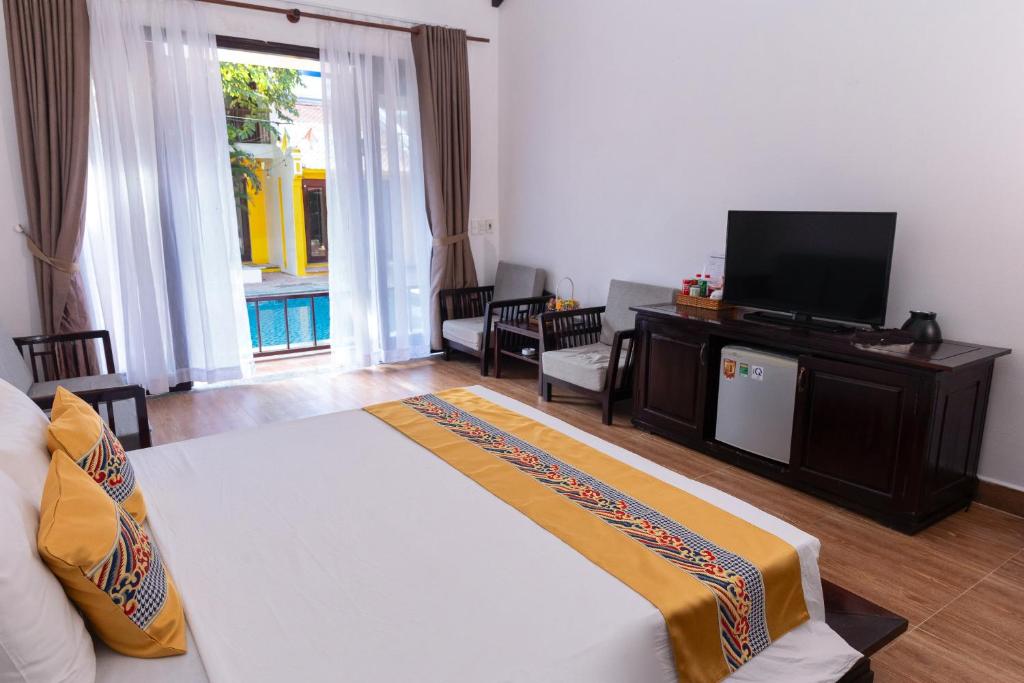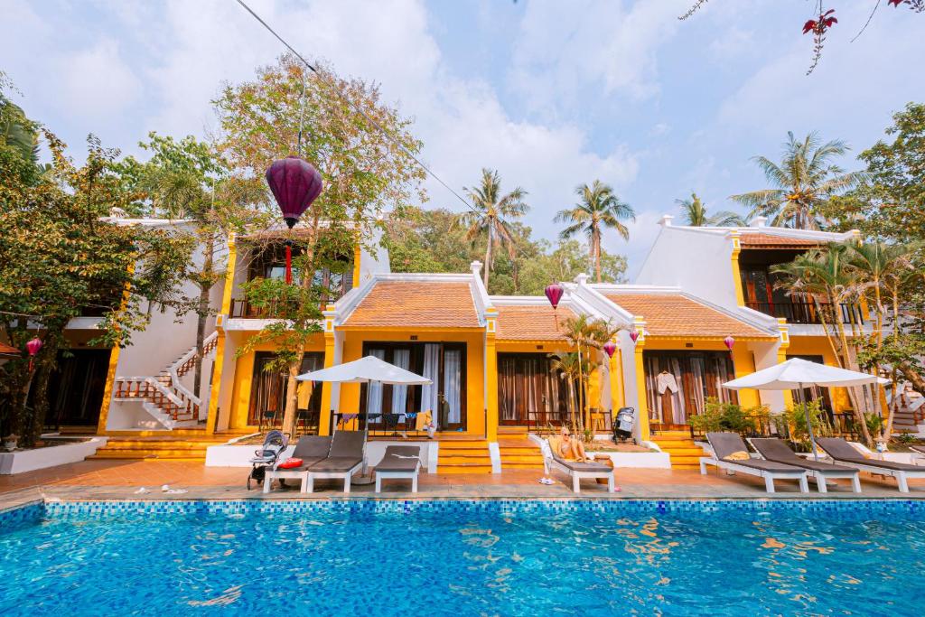 Không gian của Hoi An Phu Quoc Resort & Spa được thiết kế theo phong cách hiện đại nhưng vẫn hài hòa với thiên nhiên, tạo cảm giác thư thái ngay từ khoảnh khắc đặt chân đến. Hồ bơi ngoài trời rộng rãi là nơi tuyệt vời để bạn thư giãn sau một ngày khám phá hoặc đơn giản là đắm mình trong làn nước mát giữa trời xanh.