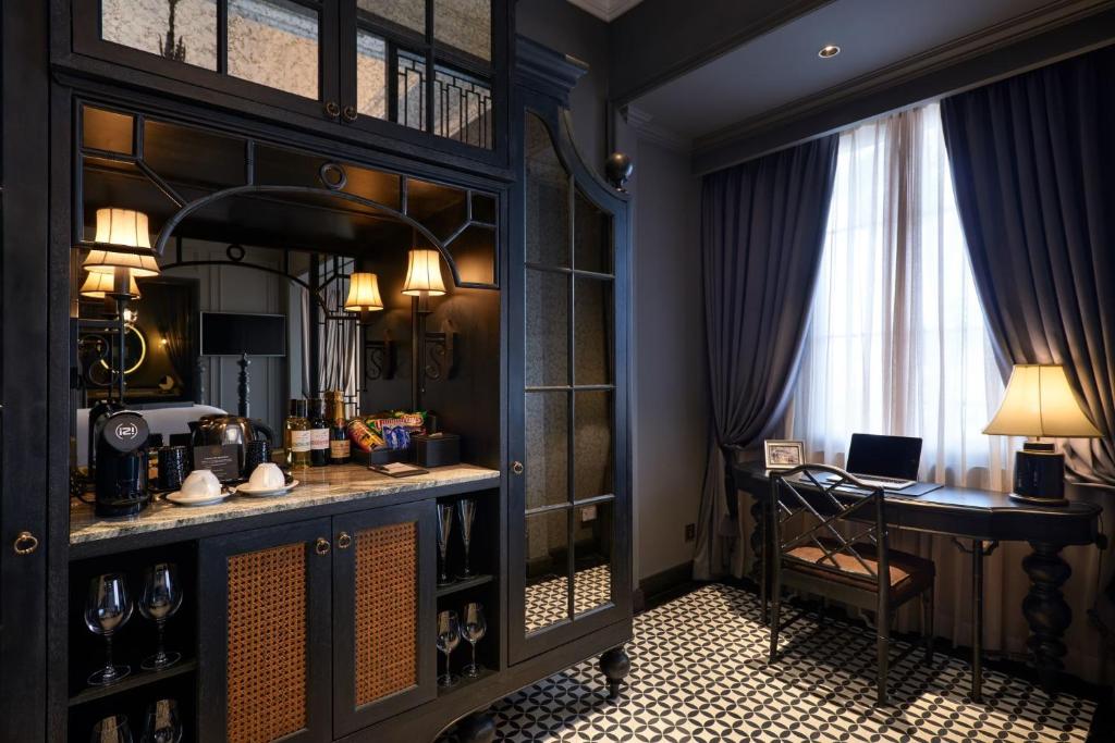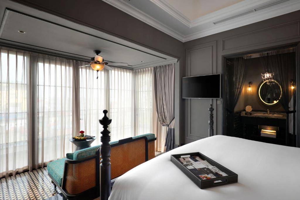 Một số phòng khoe ban công lộng gió, nơi bạn nhấp champagne ngắm dòng người Hà Nội nhảy múa bên dưới; những căn khác mở cửa sổ ôm trọn view thành phố rực rỡ – không phải cái nhìn xa xăm, mà là cái ôm ấp từ những tòa tháp soi bóng hồ Gươm. Ánh sáng pha lê từ đèn chùm, rèm nhung đỏ thẫm – thức giấc với tiếng chuông nhà thờ vọng xa, kéo rèm đón nắng mai. Đây là nơi phòng không gây dị ứng khắc sâu dấu ấn, từ những buổi thiền định trên ghế ngồi đến giấc ngủ sâu không ngắt quãng, lý tưởng cho du khách nhạy cảm hoặc nghệ sĩ tìm cảm hứng.