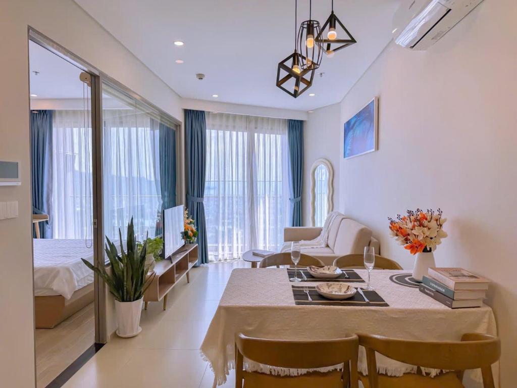 Bên trong căn hộ, mọi tiện nghi đều được chăm chút để mang lại cảm giác “nghỉ dưỡng tại nhà” nhưng với đẳng cấp cao hơn. Điều hòa hiện đại, hồ bơi riêng, bể sụcphòng xông hơi khô là những điểm nhấn giúp du khách tận hưởng trọn vẹn kỳ nghỉ. Sân hiên riêng mở ra tầm nhìn thành phố lung linh về đêm, trong khi khu vực ghế ngồi rộng rãi tạo nên không gian thư giãn hoàn hảo.