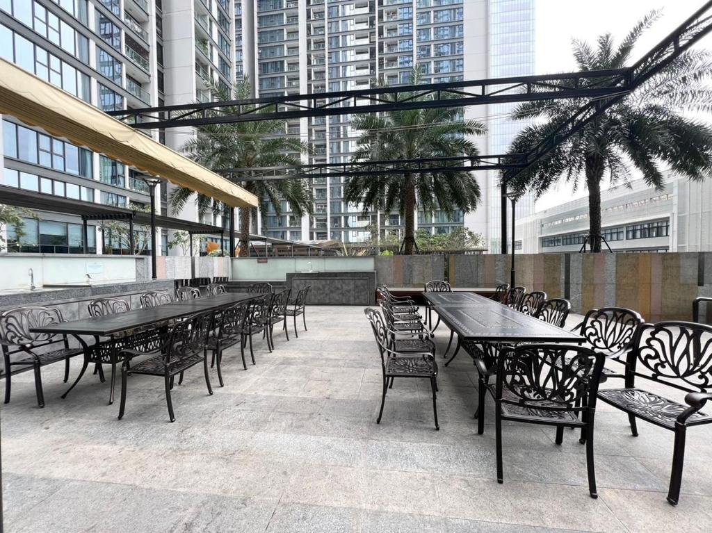 Sân hiên riêng với tầm nhìn ra thành phố, cho phép thư giãn và ngắm cảnh.