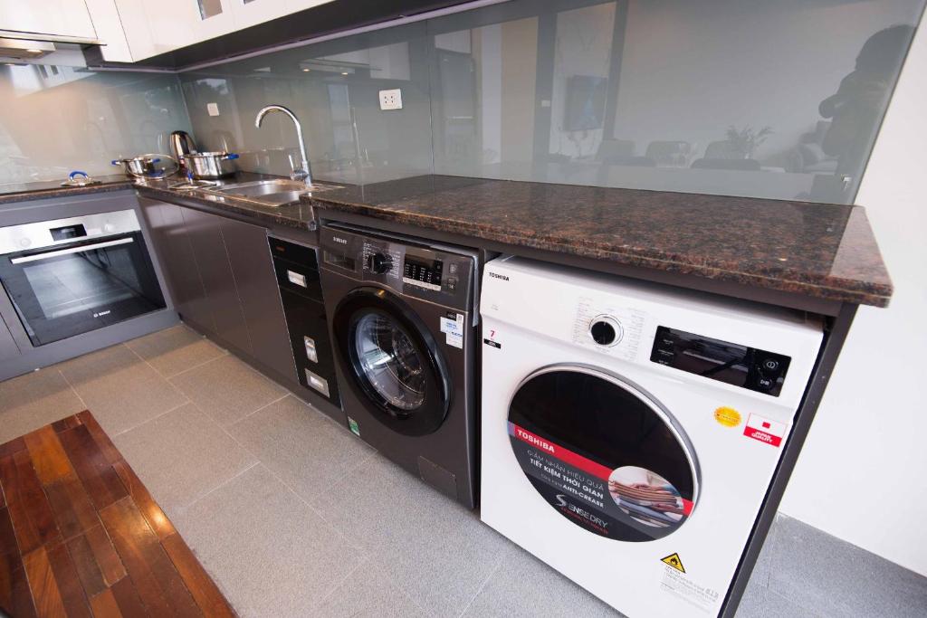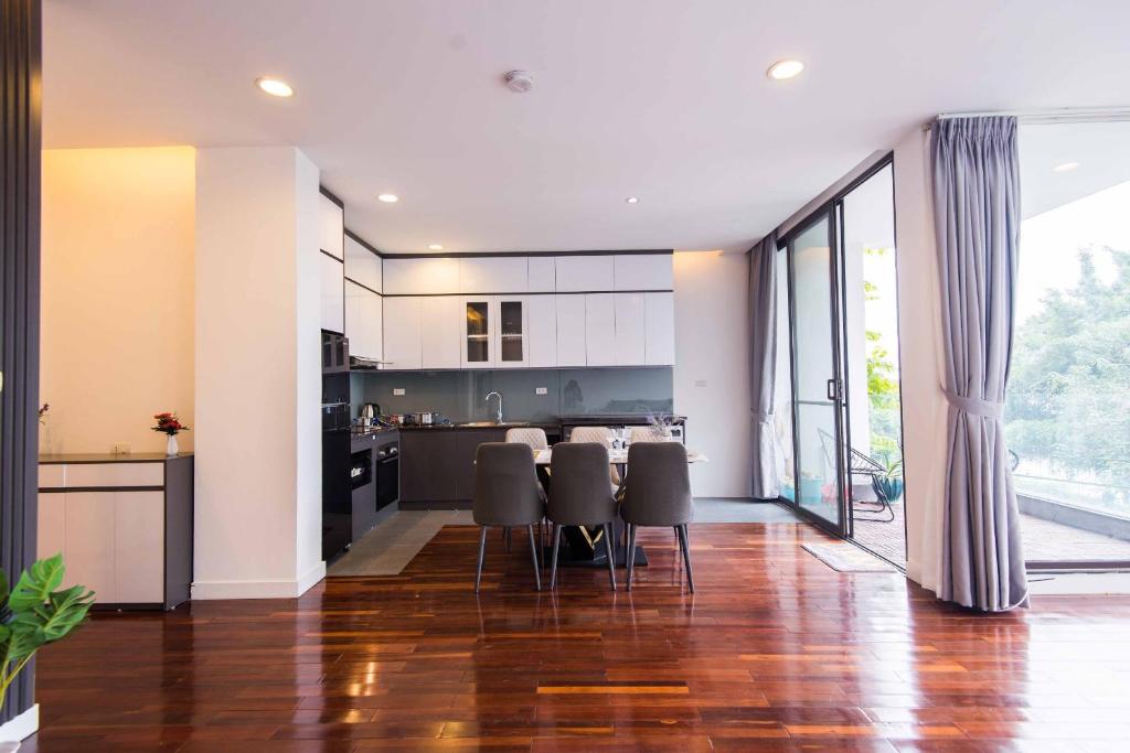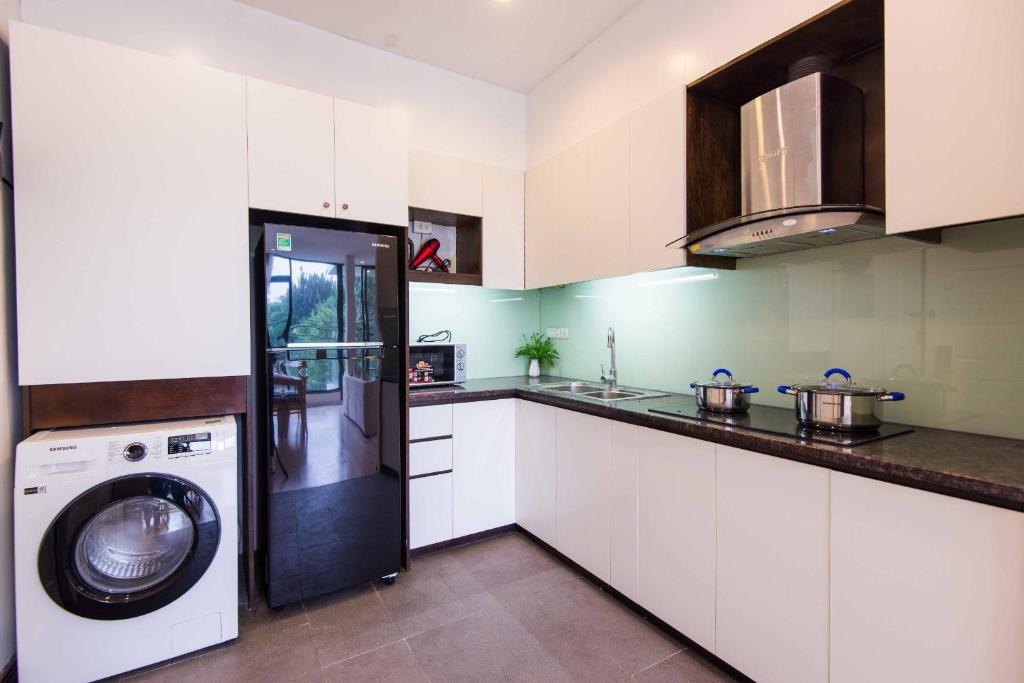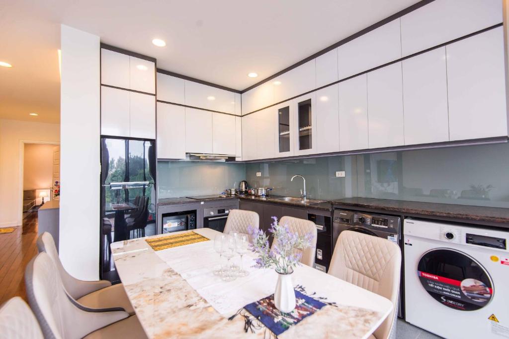 Mỗi căn hộ tại Luxe Paradise Residence đều được thiết kế tinh tế, có ban công riêng hướng ra thành phố, nơi du khách có thể ngắm nhìn quang cảnh đô thị Hà Nội sôi động. Bếp được trang bị đầy đủ tủ lạnh, lò vi sóng và các vật dụng cần thiết, phù hợp cho cả những bữa ăn gia đình ấm cúng hay những buổi tiệc nhỏ cùng bạn bè. Phòng tắm riêng khép kín đi kèm tiện nghi hiện đại và không gian sạch sẽ, mang lại cảm giác thư giãn tuyệt đối.