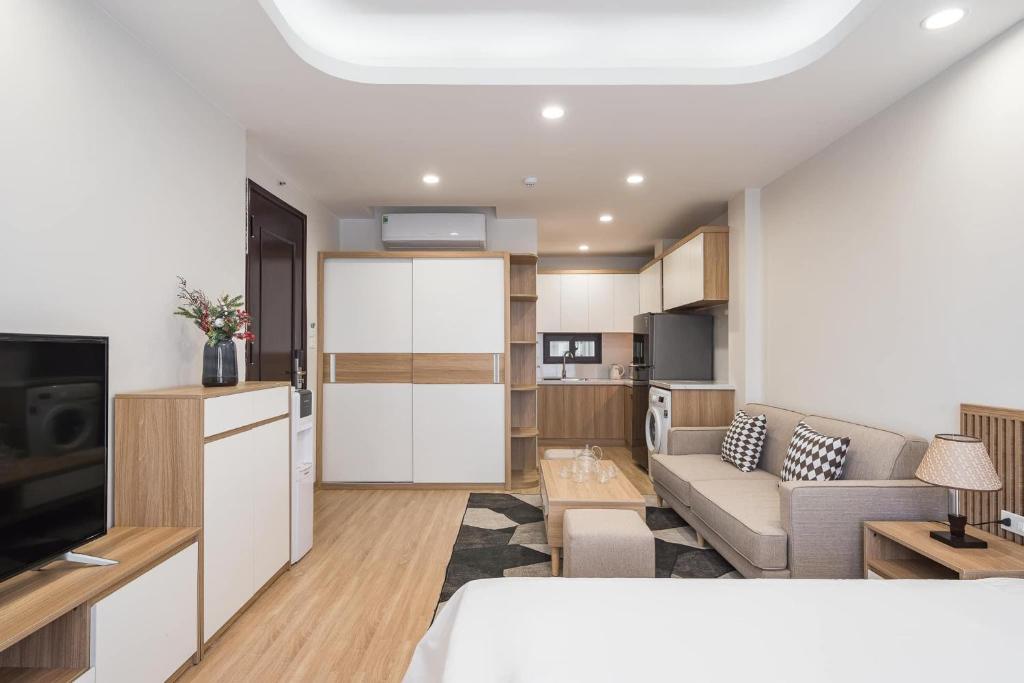 Homestay được trang bị đầy đủ tiện ích hiện đại. Mỗi căn hộ đều có điều hòa mát lạnh, khu vực bếp rộng rãi với đầy đủ dụng cụ và không gian ăn uống tiện lợi. Du khách có thể thư giãn cùng TV màn hình phẳng sau một ngày dài khám phá thành phố. Phòng tắm riêng hiện đại với vòi xịt/chậu rửa vệ sinh, máy sấy tóc và đồ dùng cá nhân miễn phí được chuẩn bị sẵn để phục vụ nhu cầu hằng ngày. Ngoài ra, căn hộ còn có tủ lạnh, lò vi sóng, bếp và ấm đun nước – giúp du khách thoải mái nấu nướng và sinh hoạt như ở nhà.