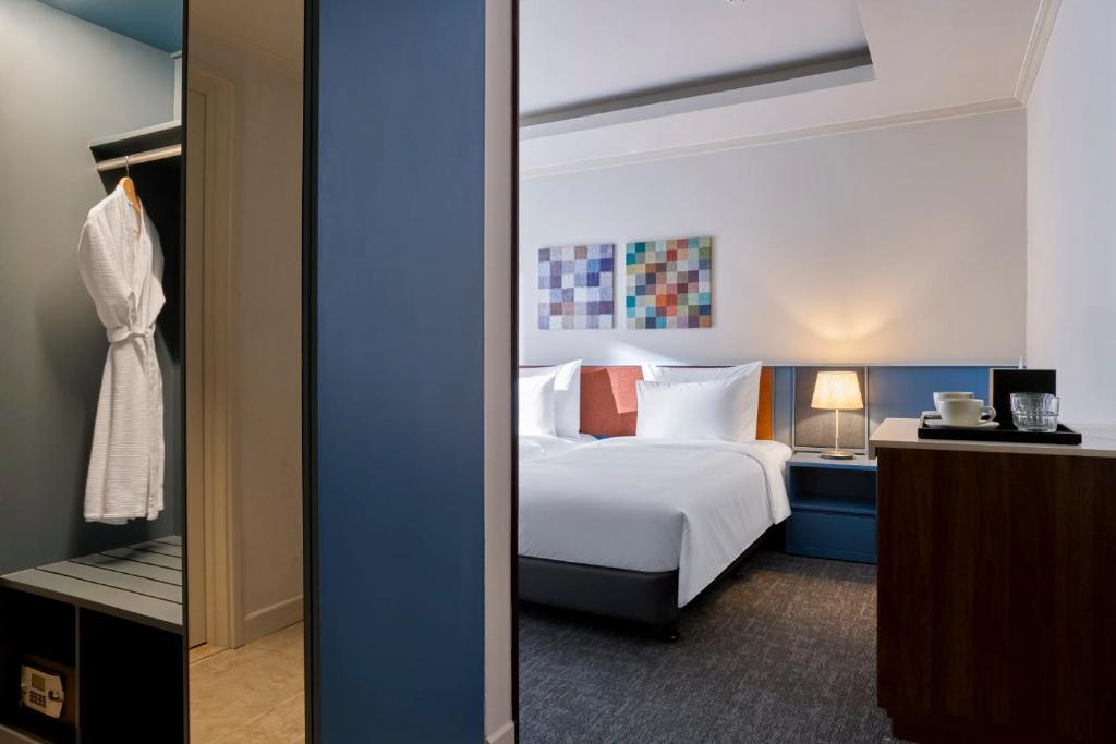Phòng ốc thì rộng rãi, sạch bong kin kít. Giường king-size to đùng, nệm êm như ôm, chăn ga trắng muốt thơm mùi nắng mới. Tủ quần áo rộng, minibar miễn phí nước + snack, ấm đun nước, két an toàn, TV 50 inch có Netflix sẵn sàng. Phòng tắm thì sang chảnh với vòi sen mưa nóng lạnh tức thì, đồ vệ sinh cao cấp, khăn tắm dày cui – bước vào là muốn hát “trời sinh một cặp hoàn hảo”.