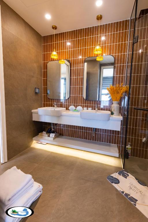 Hồ bơi ngoài trời rộng rãi là nơi lý tưởng để thả mình trong làn nước trong mát, ngắm cảnh xung quanh hay thư giãn trên những chiếc ghế dài. Sân hiên và khu vực bãi biển riêng mang đến không gian phóng khoáng, gần gũi với thiên nhiên, thích hợp cho gia đình, nhóm bạn hoặc các cặp đôi tìm kiếm sự yên bình. Khu vườn xanh mát xung quanh căn hộ cũng là nơi tuyệt vời để tản bộ, hít thở không khí trong lành và thư giãn giữa thiên nhiên nhiệt đới.