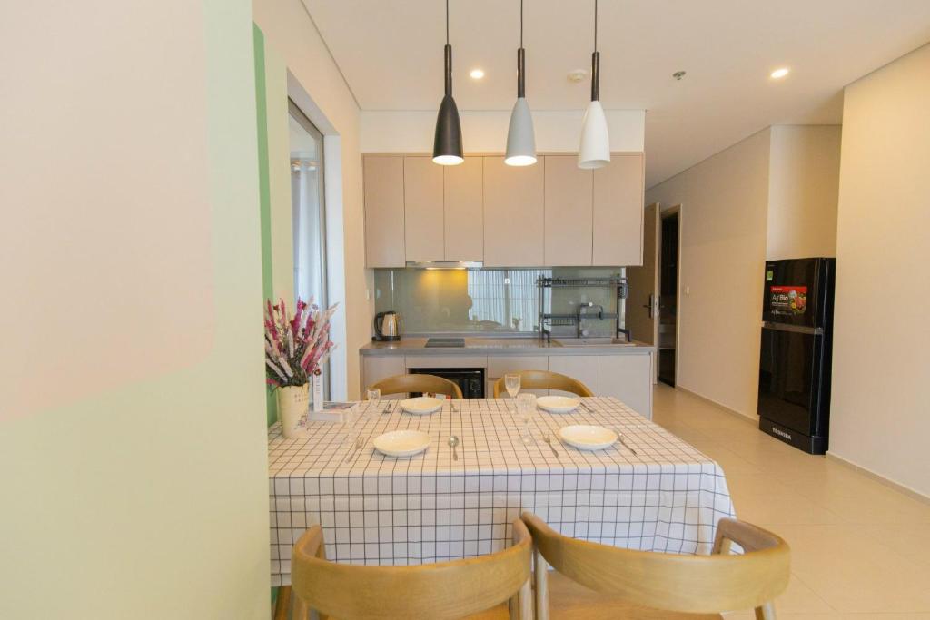 Không gian bên trong được thiết kế như một bản giao hưởng của ánh sáng và sự tiện nghi. Mỗi căn hộ đều có ban công riêng hướng phố, để từng tia nắng sớm chạm nhẹ qua rèm cửa, hòa cùng làn gió mặn mà từ đại dương. Khu vực tiếp khách rộng thoáng, TV truyền hình cáp màn hình phẳng, và khu bếp đầy đủ tiện nghi với lò vi sóng, tủ lạnh, ấm đun nước – tất cả tạo nên một không gian vừa thân thuộc, vừa cao cấp như chính căn hộ của bạn.