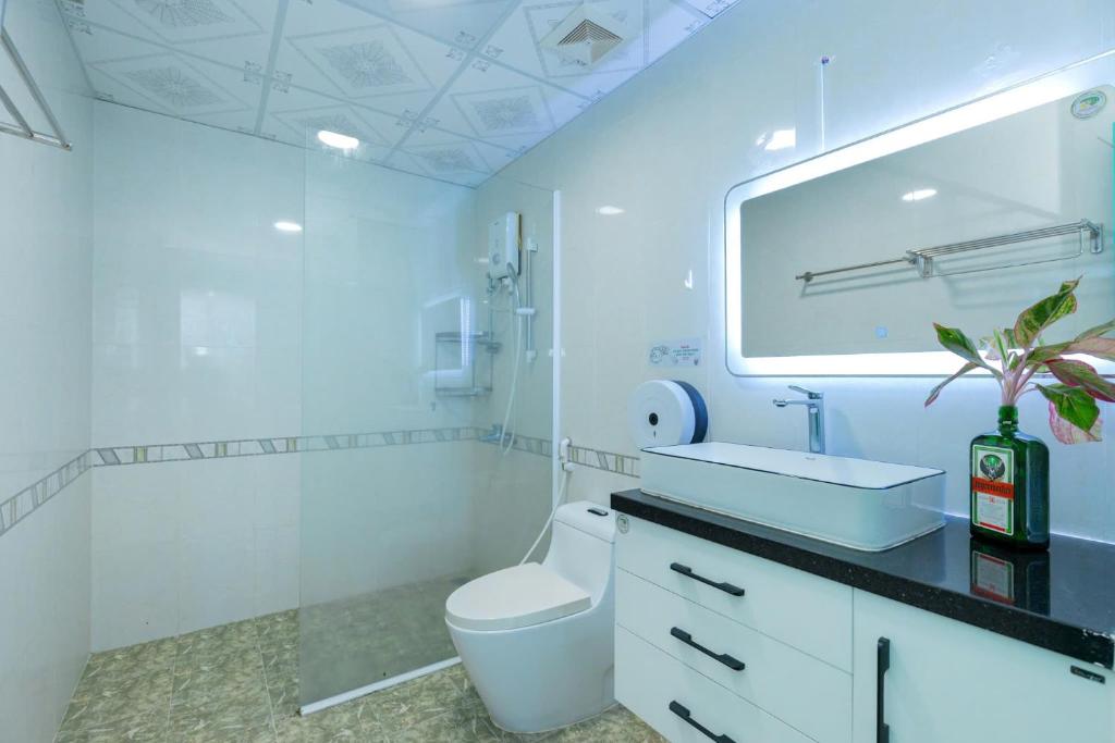 Phòng tắm riêng hiện đại, sạch sẽ, trang bị đầy đủ máy sấy tóc, đồ vệ sinh cá nhân, vòi sen nhiệt độ ổn định – đem lại cảm giác tiện nghi không kém khách sạn quốc tế. Điều hòa mát lạnh, ánh sáng êm dịu cùng tông màu trang nhã giúp không gian trở nên dễ chịu, khiến mỗi giấc ngủ đều trọn vẹn.