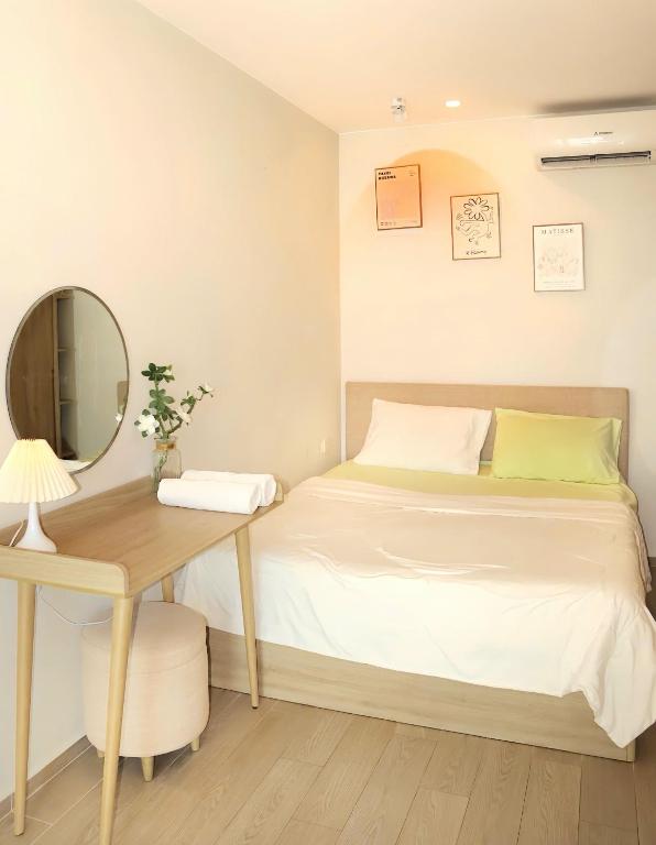 Phòng tắm riêng của mỗi căn hộ là một không gian thư giãn riêng biệt, với vòi xịt, chậu rửa vệ sinh kiểu Á, cùng đồ dùng cá nhân miễn phí. Sự tỉ mỉ trong từng chi tiết nhỏ – từ ánh sáng dịu nhẹ đến cách bài trí tinh gọn – tạo nên cảm giác vừa sang trọng vừa gần gũi.