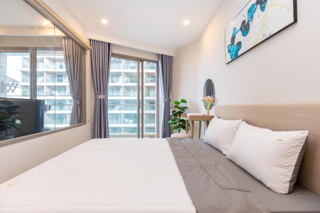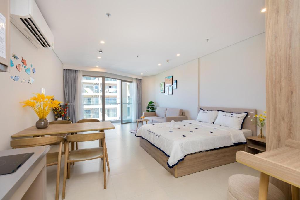 Mỗi căn hộ tại The Sóng được thiết kế như một không gian sống nghệ thuật, hòa quyện giữa ánh sáng tự nhiên và phong cách nội thất đương đại. Từ ban công riêng, bạn có thể ngắm nhìn thành phố lung linh ánh đèn hoặc lặng yên lắng nghe sóng vỗ xa xăm. Căn hộ được trang bị đầy đủ tiện nghi: bếp hiện đại, tủ lạnh, ấm đun nước, TV màn hình phẳng, máy giặt, phòng tắm riêng với vòi sen mát lạnh – tất cả được sắp đặt tinh tế, giúp bạn cảm nhận sự thoải mái như đang ở chính ngôi nhà của mình.