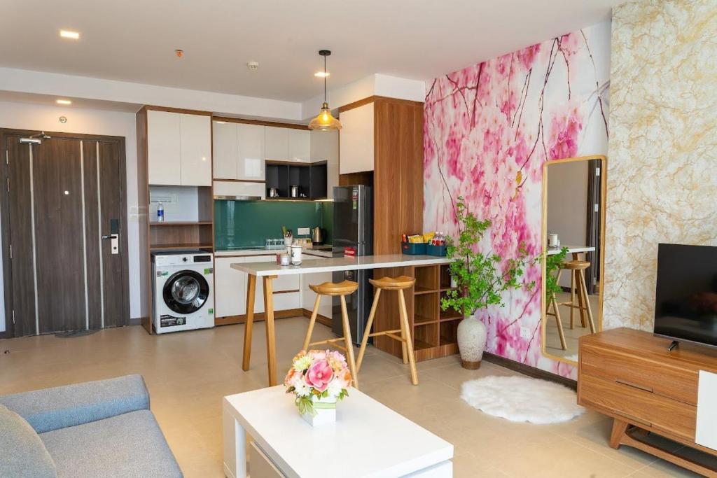 Từ ban công riêng, du khách có thể phóng tầm mắt ra toàn cảnh thành phố, nhìn thấy những con đường rợp bóng cây, nghe tiếng gió thổi qua từng góc phố, và cảm nhận nhịp sống Vũng Tàu một cách trọn vẹn. Căn hộ tại đây được thiết kế với tinh thần hiện đại, nhẹ nhàng nhưng vẫn ấm áp. Mỗi chi tiết trong không gian đều được chọn lọc kỹ càng – từ màu sắc trung tính, ánh sáng tự nhiên cho đến cách bài trí nội thất, tạo nên một tổng thể hài hòa và thư giãn.