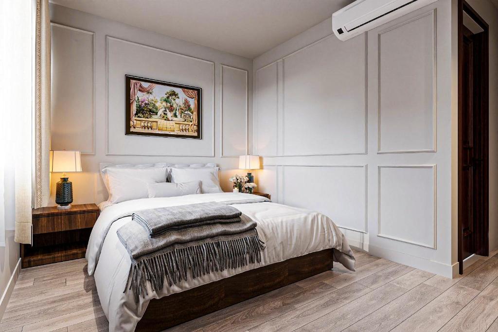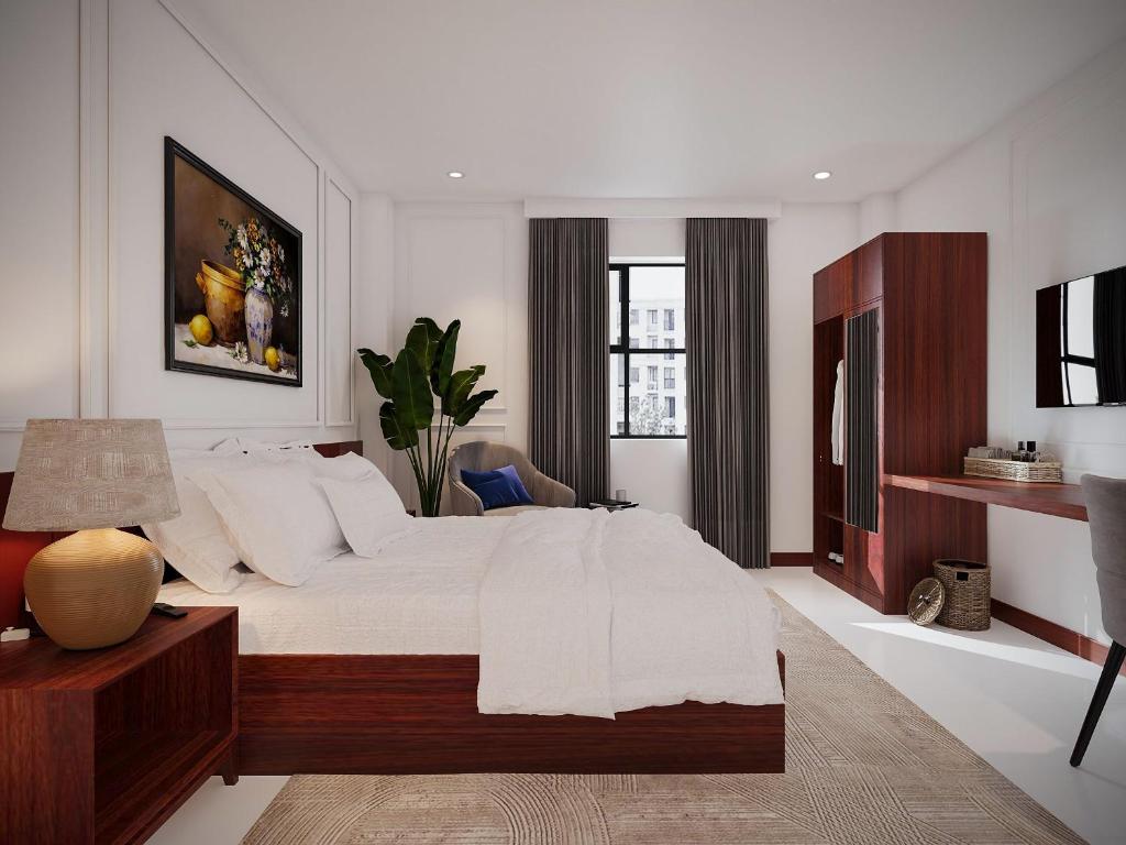 Phòng nghỉ được thiết kế hướng đến cảm giác thư giãn tuyệt đối. Từ ga giường cotton trắng tinh, ghế sofa nhung mềm mại, đến cửa sổ lớn nhìn ra góc phố Sài Gòn – mỗi chi tiết đều được lựa chọn kỹ lưỡng. Khi đêm buông xuống, ánh đèn mờ ảo phản chiếu trên tường gạch thô tạo nên vẻ đẹp vừa cổ điển, vừa hiện đại, khiến du khách có cảm giác như đang sống trong một thước phim lãng mạn giữa thành phố.