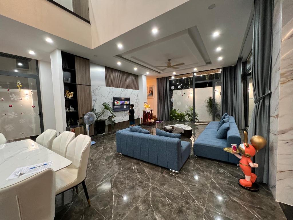 Phòng khách rộng lớn là nơi gắn kết mọi người, từ những buổi chuyện trò thân mật đến những bữa tiệc ấm cúng bên ánh đèn vàng. Khu bếp hiện đại được trang bị đầy đủ tiện nghi, cho phép bạn tự tay chuẩn bị bữa ăn yêu thích, từ hải sản tươi sống của biển đến những món ăn gia đình quen thuộc.