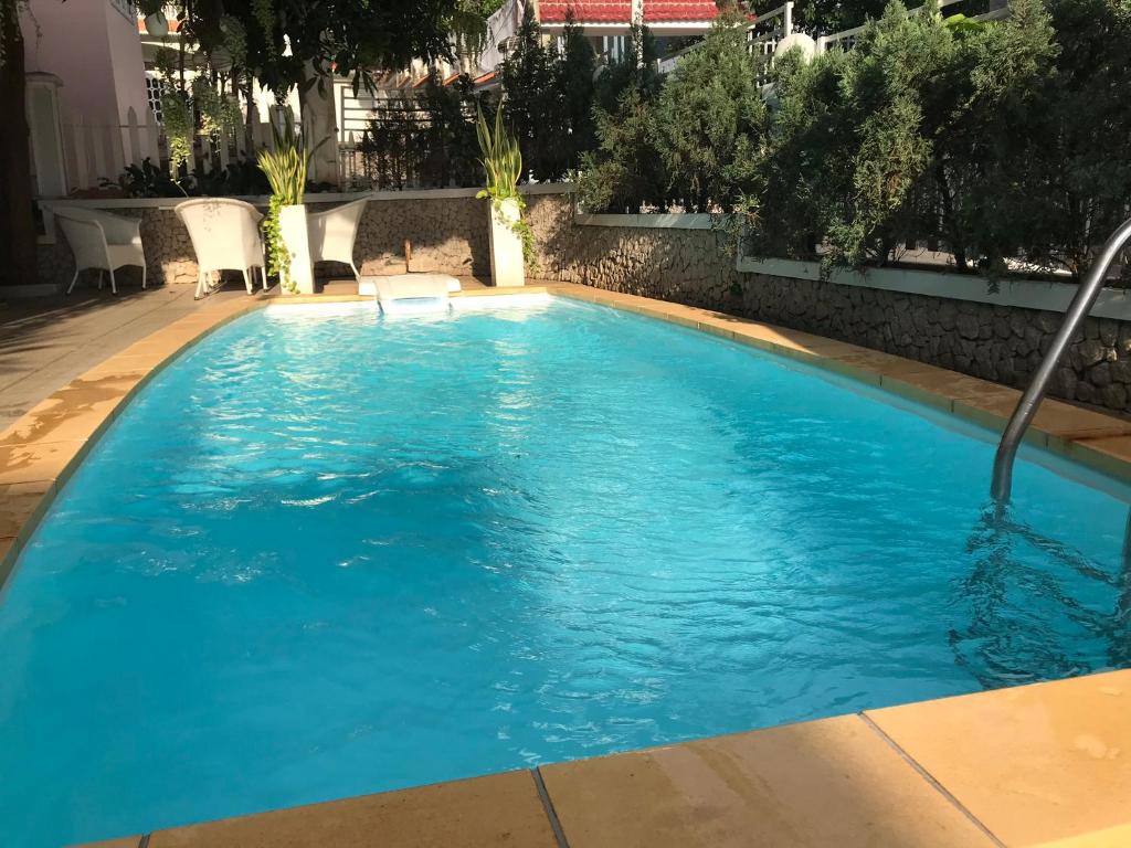 Điểm nhấn của biệt thự chính là hồ bơi ngoài trời xanh mát – nơi bạn có thể thả mình trong làn nước trong veo, tận hưởng nắng vàng và không khí trong lành của biển. Không gian sân hiên rộng rãi, được bố trí ghế nghỉ, là nơi lý tưởng để ngắm hoàng hôn hoặc tổ chức tiệc BBQ cùng người thân. Với khu vực bãi biển riêng, du khách có thể dễ dàng hòa mình vào thiên nhiên, cảm nhận sự an yên hiếm có chỉ tìm thấy ở vùng biển Vũng Tàu.