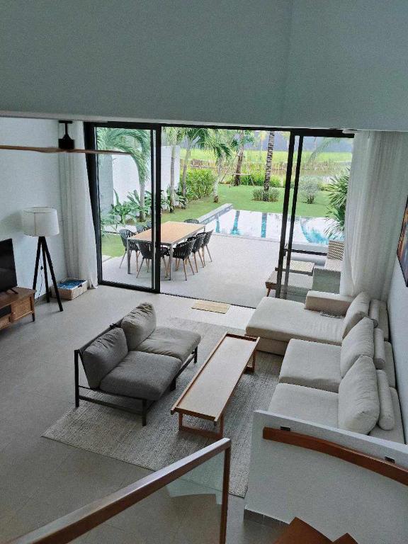 • Phòng khách rộng kết nối trực tiếp với hồ bơi và sân vườn